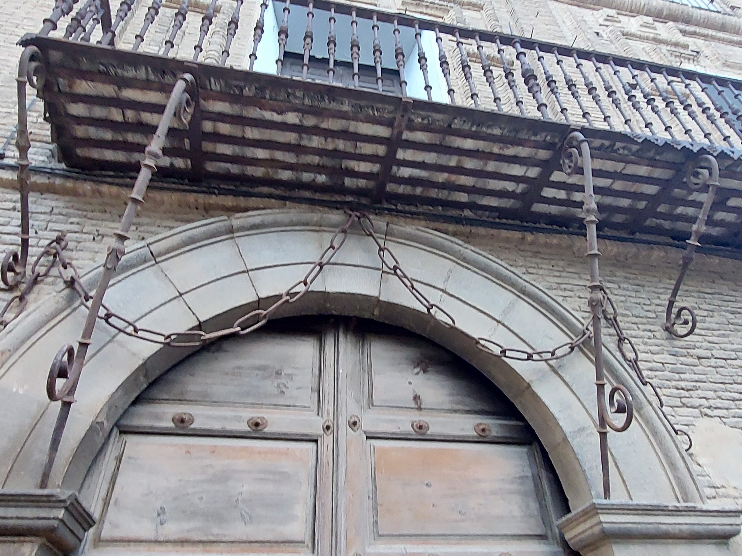 La entrada de la Casa de los Sesma (Corella, Navarra) donde aún se pueden observar las cadenas, símbolo de residencia real